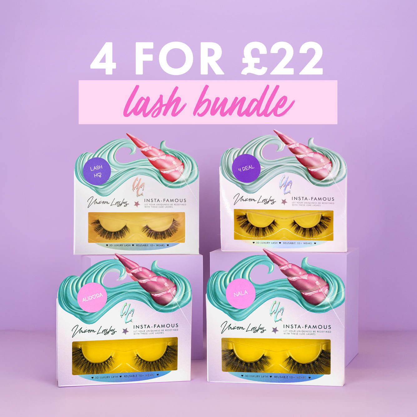 Select your favourite FOUR lashes and click add to cart to build your bundle for the ultimate lash deal.