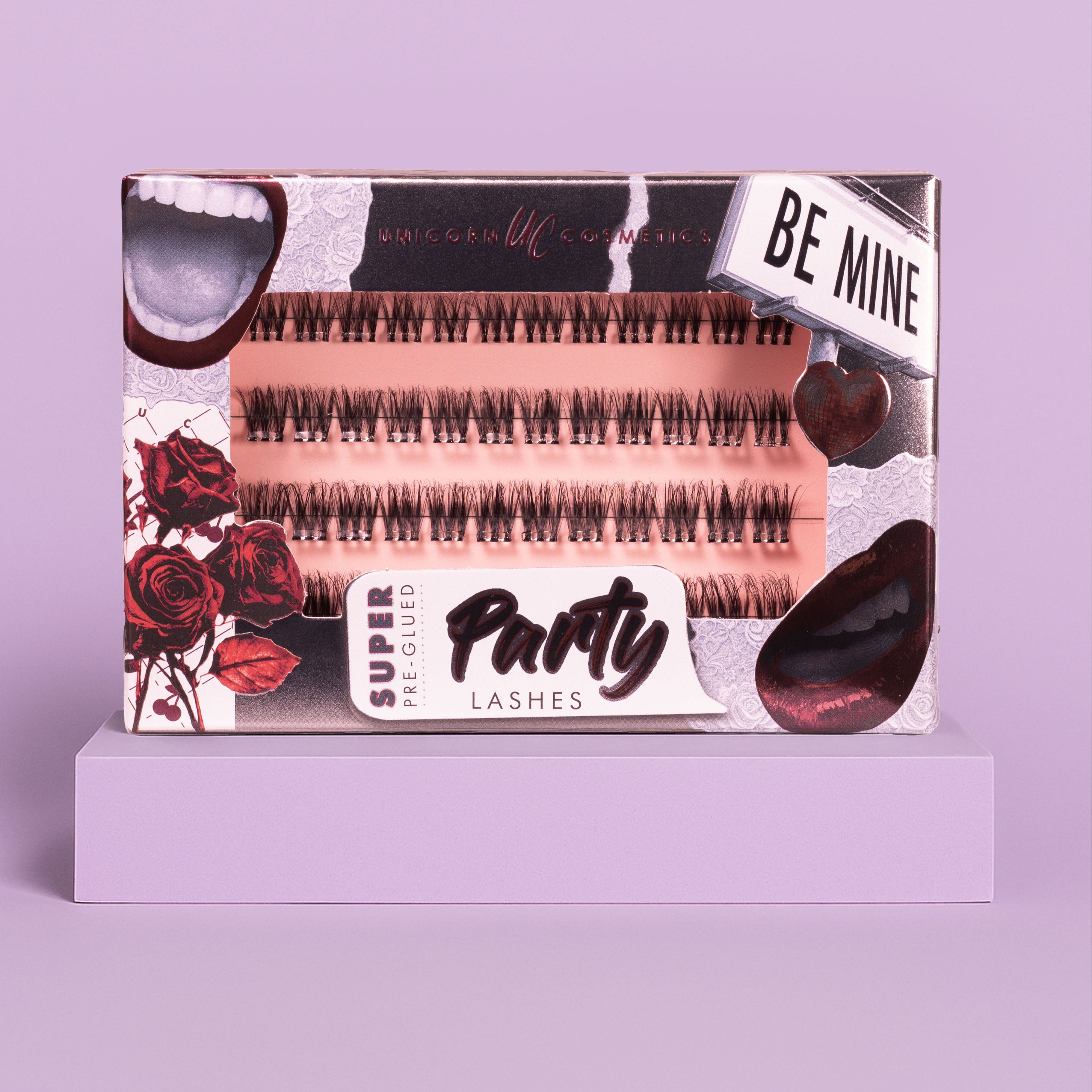 Meet the Super Pre-Glued Party Lashes by Unicorn Cosmetics powered by GLU-SION™ Technology. Brand new style with feathery & wispy ends for a subtle voluminous effect.